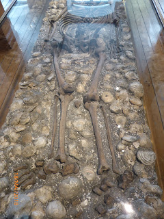 Homme de Rolfsäker, c’est pas morbide, c’est de l’histoire : il est mort il y a 4500 ans (on n’a pas la date exacte), 1,54 m, blessé par un coup tranchant à la jambe. Squelette extrêmement bien conservé grâce au lit de coquilles d’huîtres sur lequel il était allongé (je vous fais grâce de la photo de sa tête mais sachez qu’il a toutes ses dents !).