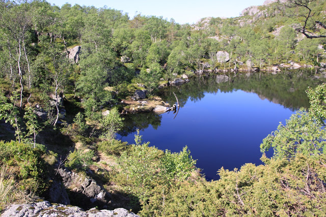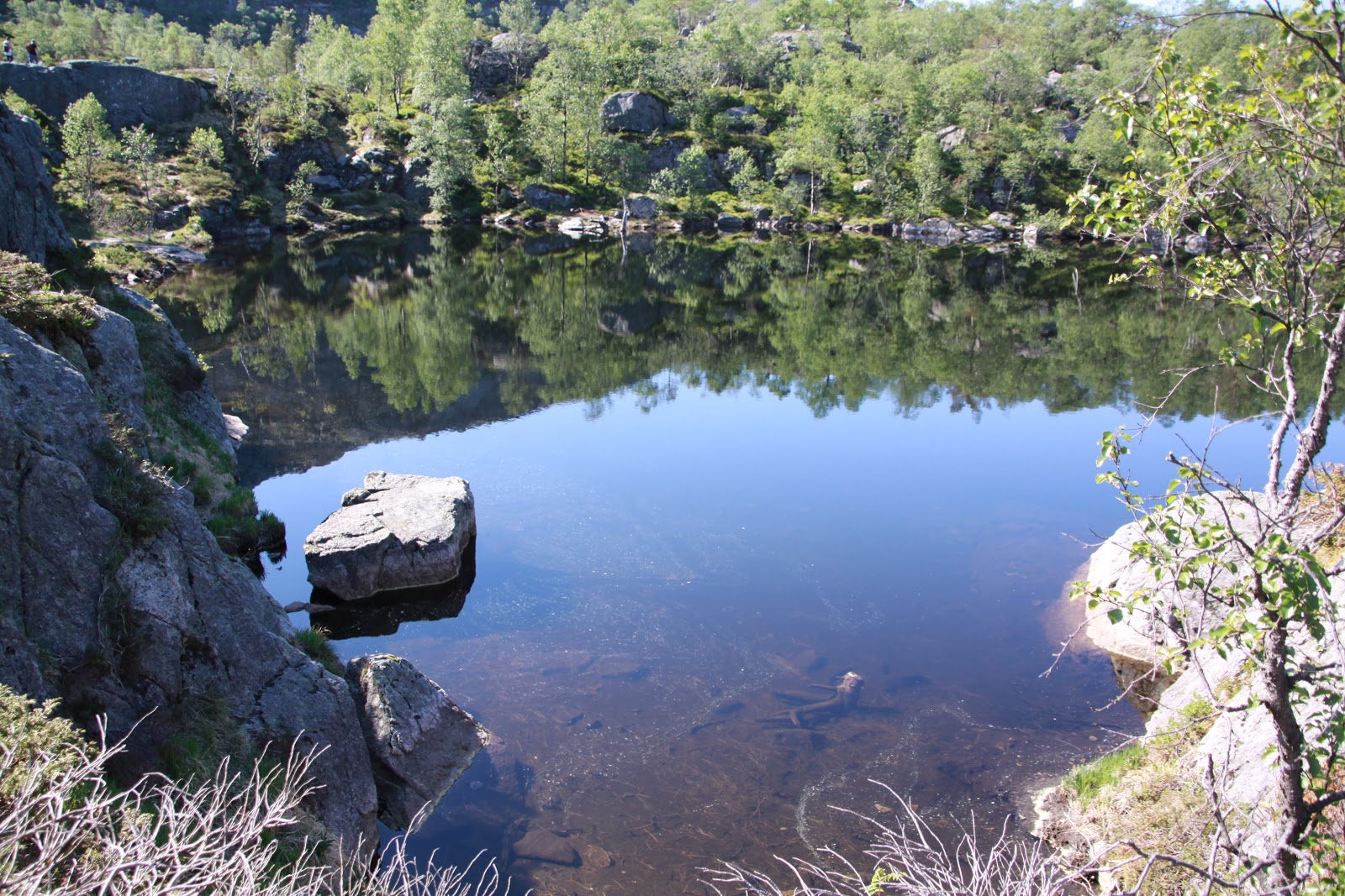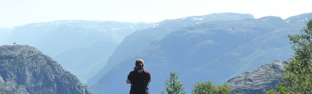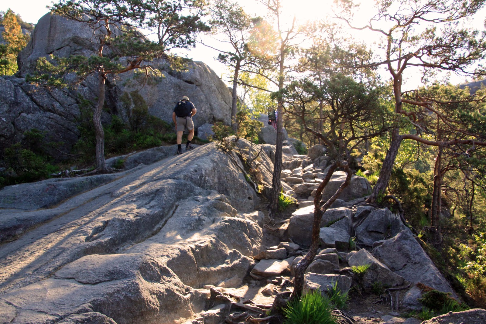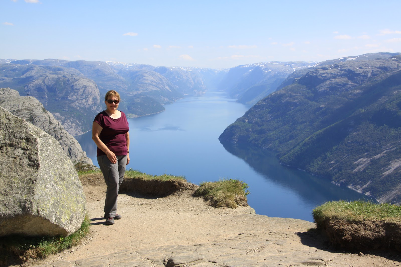 Preikestolen c’est un gros rocher monolithe de 604 m de haut qui surplombe les eaux du Lysefjord, face Ă  la ville de Stavanger. On fait l’impasse sur la ville, car on prĂ©fĂšre gambader dans la nature. Et on a Ă©tĂ© servis !