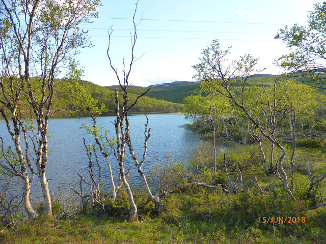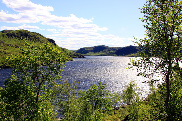 Si on excepte la route bombée, bosselée, bruyante, trouée et raccordée, les paysages qui se succèdent sont assez homogènes, avec une continuité de forêts de bouleaux (comme dans toute la Norvège), de lacs (toujours), fjords et de bien jolis paysages.