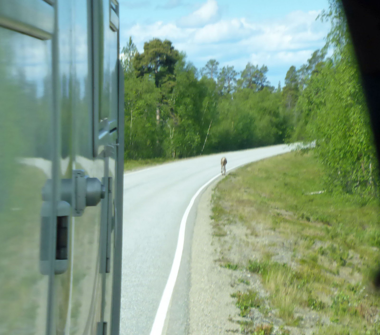 On poursuit notre route vers la SuĂšde, avec un arrĂȘt pour la nuit Ă  Rovaniemi, le « village du PĂšre NoĂ«l »  Passez votre chemin, braves gens, il n’y a strictement rien d’intĂ©ressant, surtout en juin : sans neige, le traineau reste au garage et les rennes sont aux BalĂ©ares. Ah si ! On a vu le PĂšre NoĂ«l