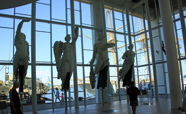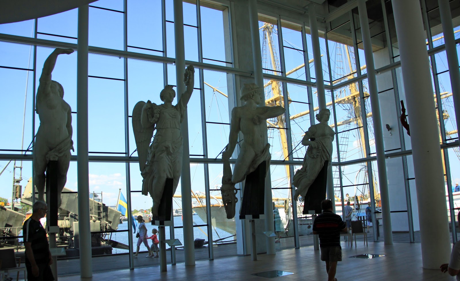 Visite du Musée de la marine de Karlskrona, sur la côte sud de la Suède, installé dans un grand bâtiment, bien évidemment en bord de mer, dont une bonne partie sur pilotis.