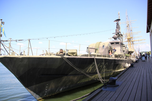 Et pour rester dans les affaires maritimes, on a dormi la veille au soir près de ce magnifique bateau garde-côte dans la baie de Karlskrona.