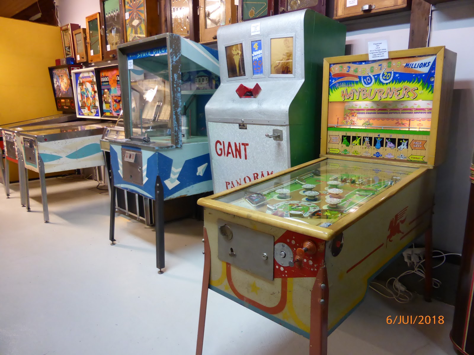 … avant d’entrer au cafĂ© du village : des flippers des annĂ©es 50, notamment un avec un beau dĂ©cor Casanova (pas sur la photo)…