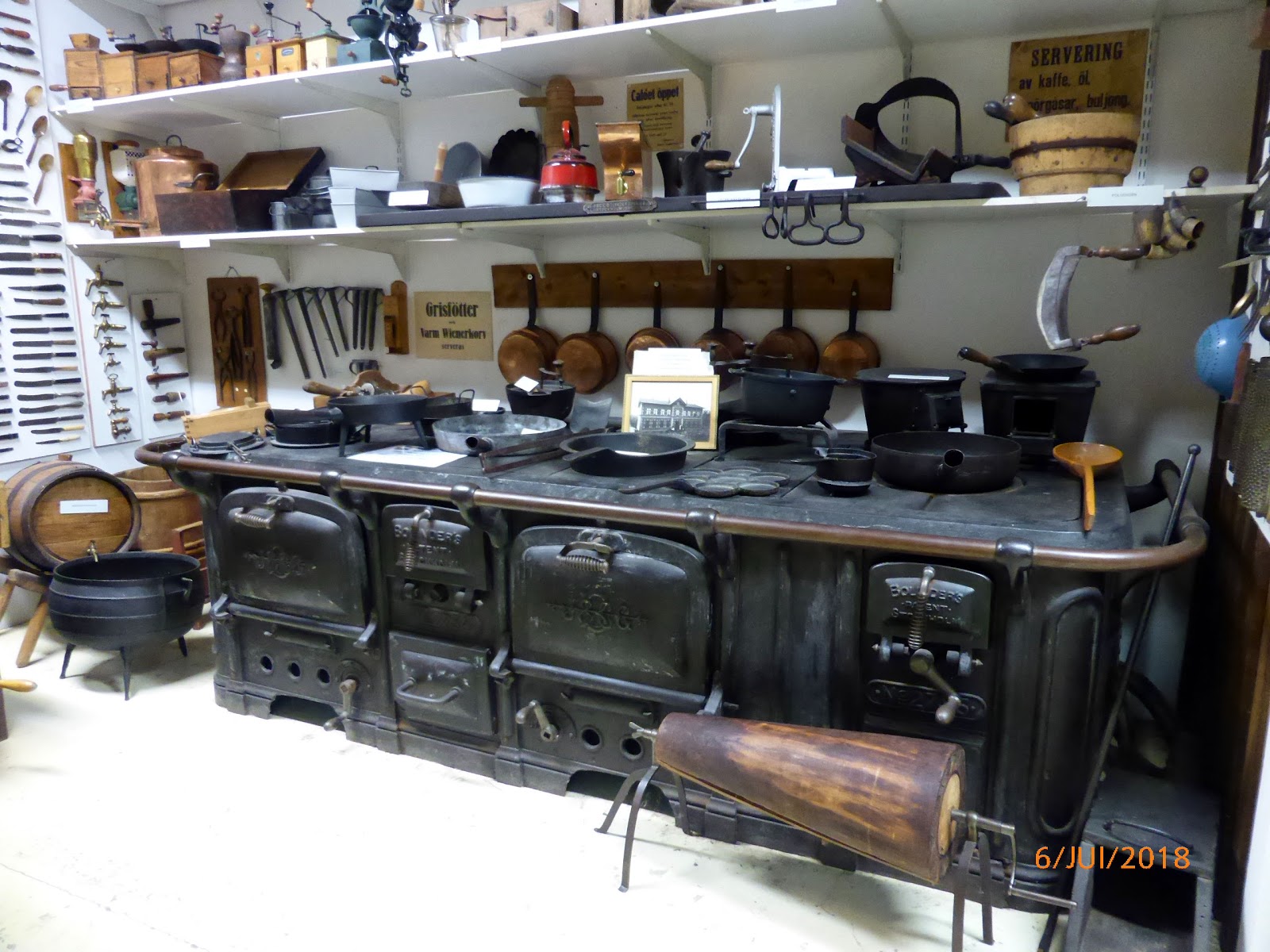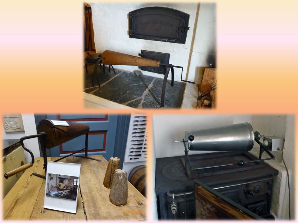 On rentre dâabord dans une ancienne Ă©picerie, avec un splendide meuble comptoir dâune dizaine de mĂštres de long, garni d’une multitude de petits tiroirs, rempli d’une quantitĂ©s de boĂźtes de denrĂ©es des annĂ©es 50, des balances jamais vues ailleurs, des caisses Ă peine enregistreuses, etc⊠et dans un coin une grosse machine Ă torrĂ©fier le cafĂ©, en Ă©tat de marche. Et jâen oublie⊠Tous ces Ă©lĂ©ments proviennent de deux boutiques des environs. (Ă©videmment j’ai oubliĂ© de prendre des photos de ce coin lĂ …).