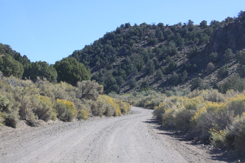 Samedi matin, nous voilà repartis pour la visite de la ville fantôme de Bodie. Quelques kms après notre départ, le GPS nous indique qu’il y a un raccourci qui nous ferait gagner 41 mn. Ni une, ni deux, je clique ! Et voilà que la route se transforme un peu plus loin en voie non goudronnée.