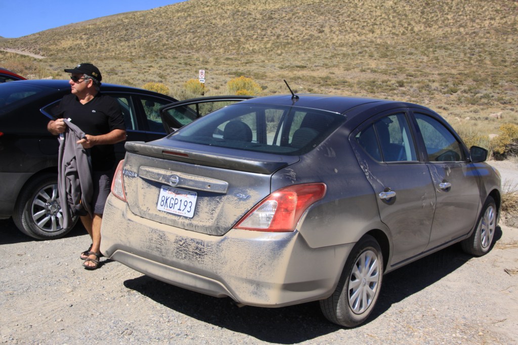Pas d’inquiétude, c’est le far west, et le Routard nous avait prévenus que la dernière portion était non goudronnée mais carrossable. Sauf que ce n’était pas la bonne entrée, et on s’est tapé 24 km dans la poussière, les ornières et les cailloux, à 10 ou 15 km / heure ! Eh bien, c’est très loooooong ! Et bonjour l’état de la voiture à l’arrivée !