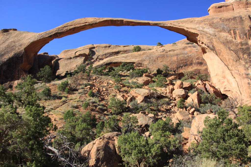Nous sommes contents de ne pas avoir visité cette arche le 1er septembre 1991. Les randonneurs ont cru entendre quelques coups de tonnerre au loin. Des touristes qui se reposaient dessous ont entendu des craquements au-dessus de leurs têtes. Ils se sont sauvés en courant alors que des roches commençaient à tomber et une dalle de 18 m de long s’est décollée du pilier droit. En tout, 180 tonnes se sont retrouvées par terre. Pendant des siècles, les infiltrations d’eau ont fragilisé la roche qui a fini par céder après un épisode de fortes pluies les 10 jours précédents, qui ont probablement alourdi la structure déjà fragilisée.