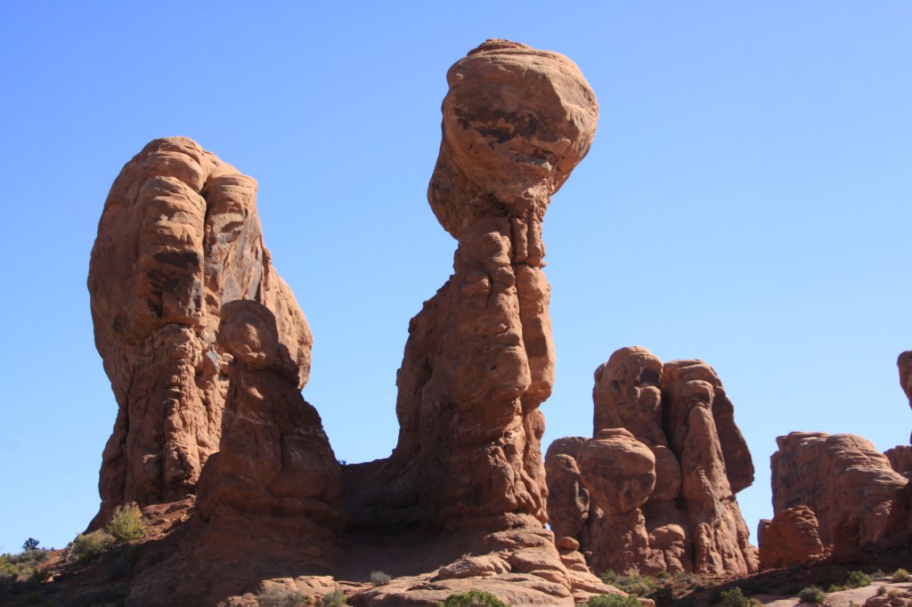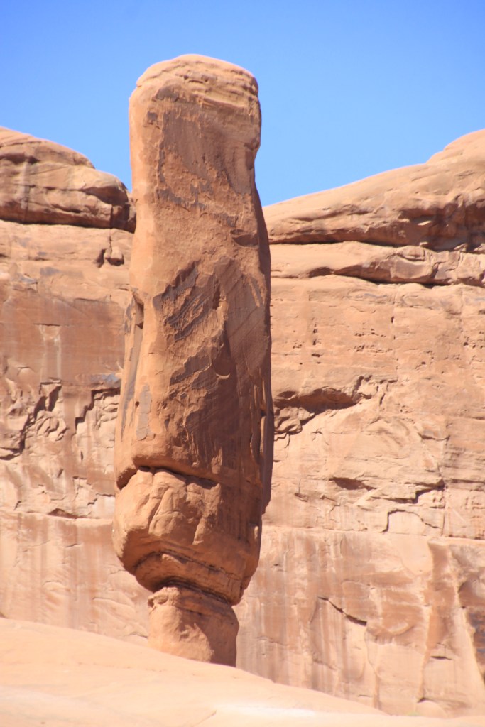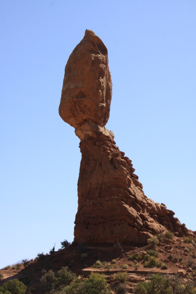 Et voici le Balanced Rock, le rocher en équilibre. La partie inférieure s’érode plus vite que celle du haut, ce qui provoquera la chute du rocher dans ? centaines d’années (ou demain ?).