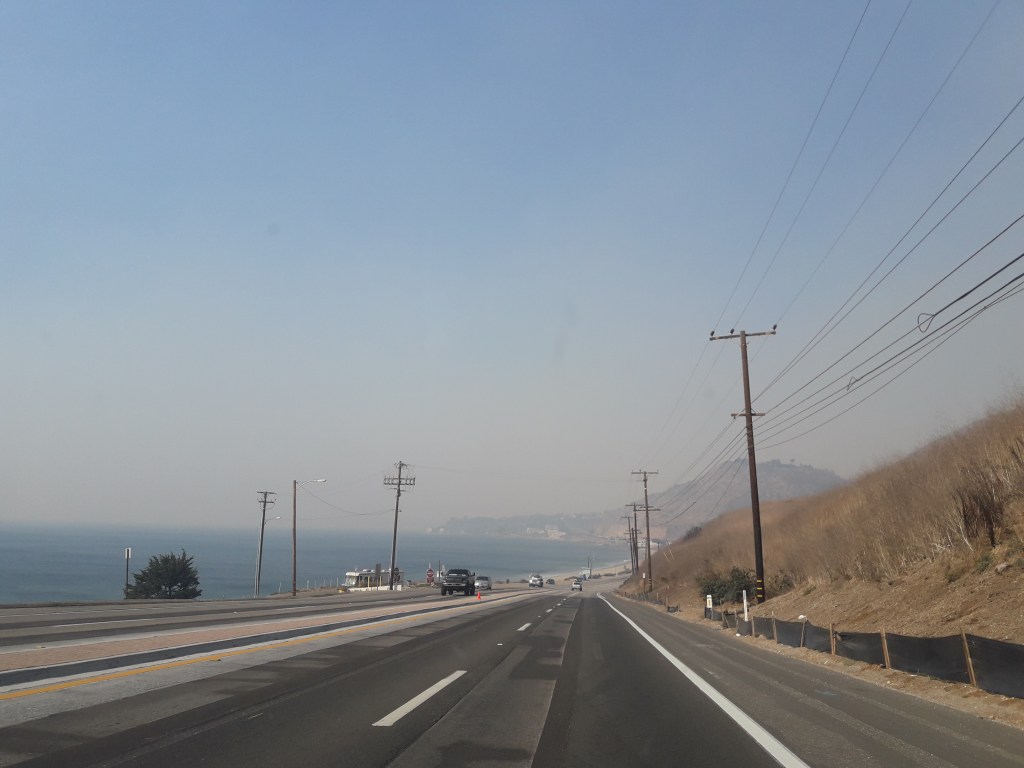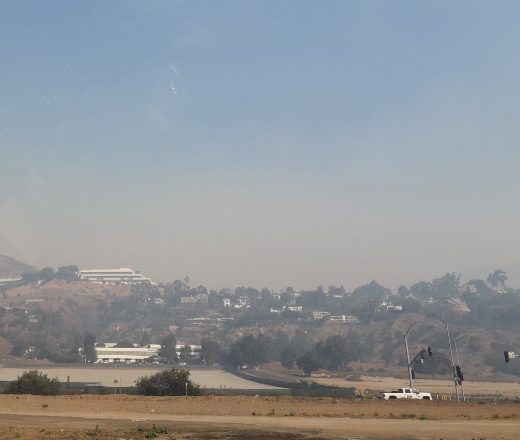 Mais le lendemain matin aux infos, j’ai vu qu’il y avait des incendies autour Los Angeles, au nord et à l’est, alors j’espère, au bénéfice du doute, que ce brouillard qui estompait jusqu’aux collines environnantes était dû au feu…