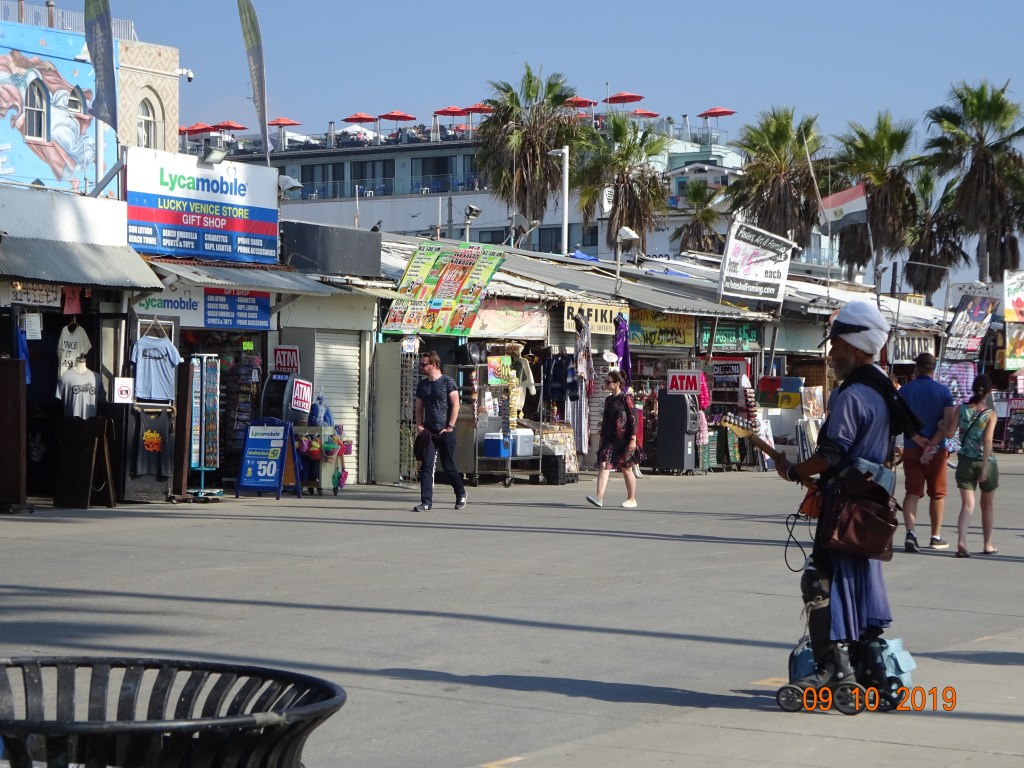 Nous sommes ensuite allés faire un tour dans le quartier de Venice, créé sur le front de mer au début du 20ème siècle à l’image de la Sérénissime italienne, par un riche industriel du tabac, avec construction de canaux sur les marécages, et importation de véritables gondoles italiennes.