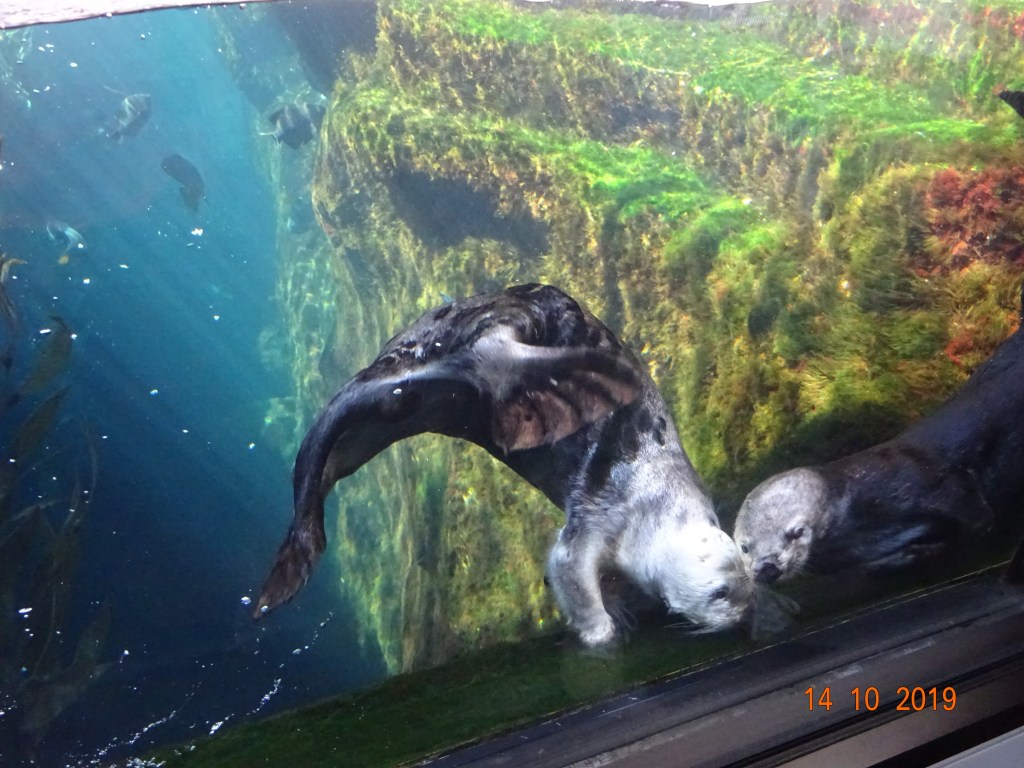 Les brochures et le Routard nous ayant « survendu » le grand Aquarium de Monterey, on décide donc d’y aller (enfin surtout moi, Alain était un peu plus sceptique). Après quelques hésitations vu les 50 $ par personne demandés pour l’entrée (mais on m’a accordé le tarif senior avec un peu d’avance… ce qui nous a payé les 3/4 du parking ! Ça se mérite les US, n’est ce pas ? ).