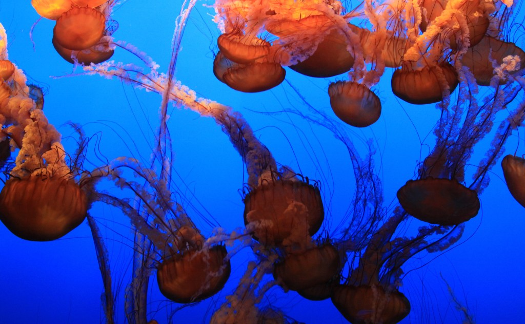 Sauf la partie consacrée aux méduses, extrêmement bien conçue au niveau des couleurs pour faire ressortir l’étrangeté de ces animaux. Vraiment sublime…