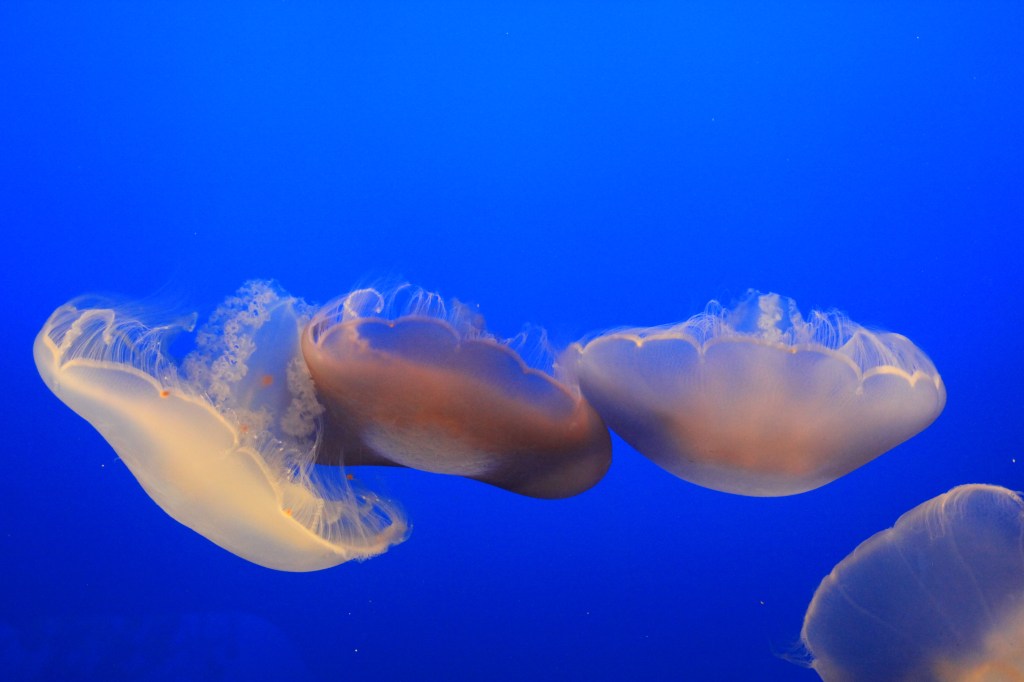 Elles aspergent leurs proies de milliers de cellules paralysantes avec leurs si jolis tentacules vaporeux, elles les attrapent entre leurs bras, et n’ont plus qu’à les faire remonter jusqu’à leur bouche.
