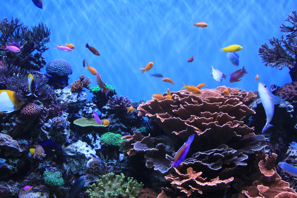Un immense aquarium accueille quelques milliers de poissons divers.