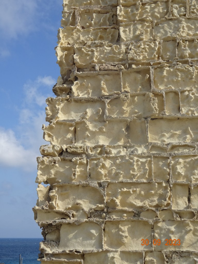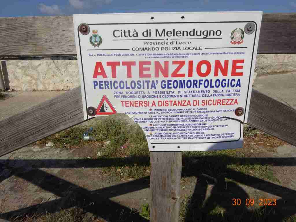 Et c’est d’ailleurs le principal souci de cette ville, dont les petites falaises s’érodent et rendent dangereuses les abords de la mer, d’où des barrières d’interdiction d’accès à certains endroits proches du bord ( allègrement franchies par 2 Français pour prendre une photo de la belle plus près de la falaise, on hallucine ! La pétasse disant en revenant : « oh, quelle beauté ! »… no comment) et de nombreux panneaux, renforcés par du matériel de surveillance :