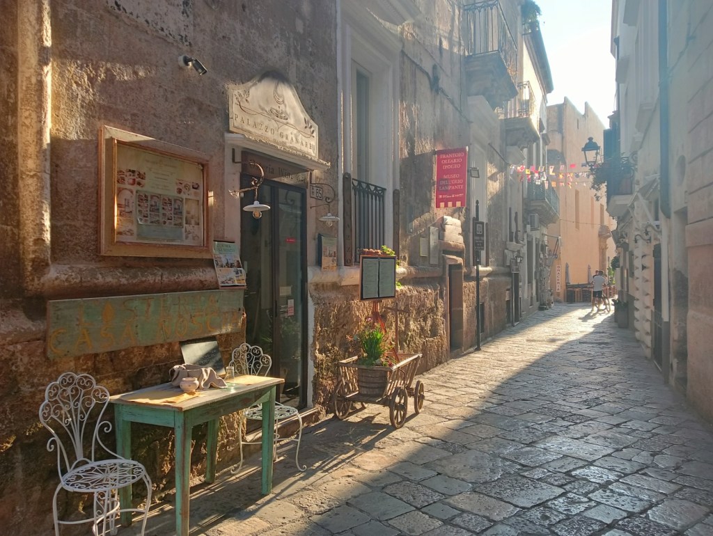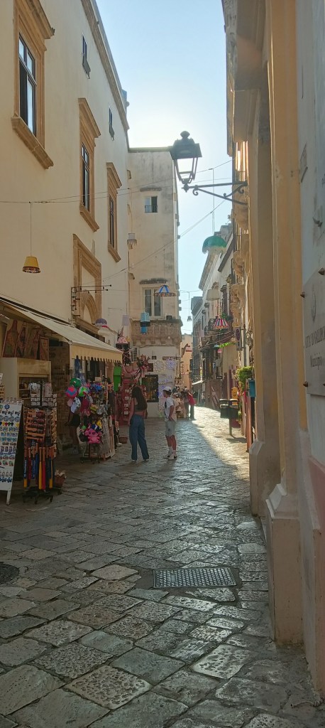 Les grecs ne s’y étaient pas trompés en appelant cette ville kale-polis, la belle ville. C’est devenu une île en 1484 quand les vénitiens décidèrent de couper l’isthme étroit qui la reliait à la terre, pour mieux la défendre. Reliée à la côte par un pont 200 ans plus tard, elle est cernée de remparts qui sont autant de belles promenades surplombant la mer.