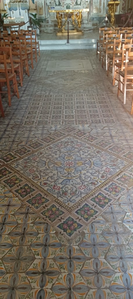 Curieux les églises aux peintures sombres, comme s’ils n’avaient pas de pigments pour créer des couleurs plus vives, ça donne une église quasiment en noir et blanc. Par contre, belles céramiques par terre et sur certaines facades.