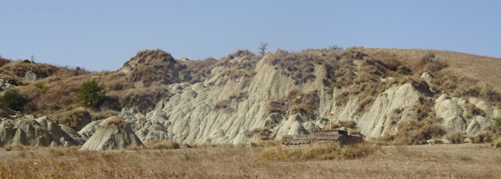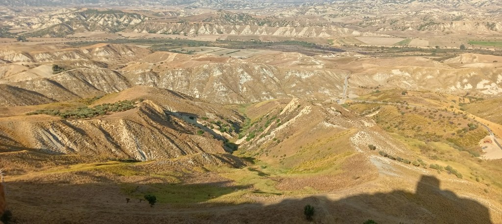 Nous sommes dans la région des « badlands », autrement dit des « mauvaises terres », au sud de la Basilicate, surnommée ainsi en raison de terrains argileux fragilisés par le ruissellement des eaux, qui creusent des ravines sur les pentes des collines.