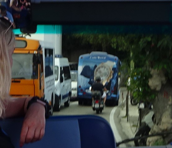 Vu que les 2 villes de l’île sont en hauteur, et pas envie de crapahuter, on signe à nouveau avec Luigi pour prendre un des petits bus bleus de l’île qui fait le circuit.