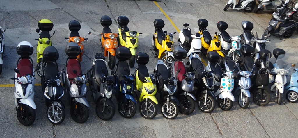 Sur le port, on retrouve notre motard sympa, qui se trouve être un guide dans une des compagnies de bateaux qui emmènent les gens sur l’île. On se prend pas la tête et on deale avec Luigi, et une vingtaine d’autres touristes, essentiellement allemands ou hollandais, quelques italiens, 3 filles slovènes ou russes ou ? et 2 amoureux québécois. Pas de raton-laveur.