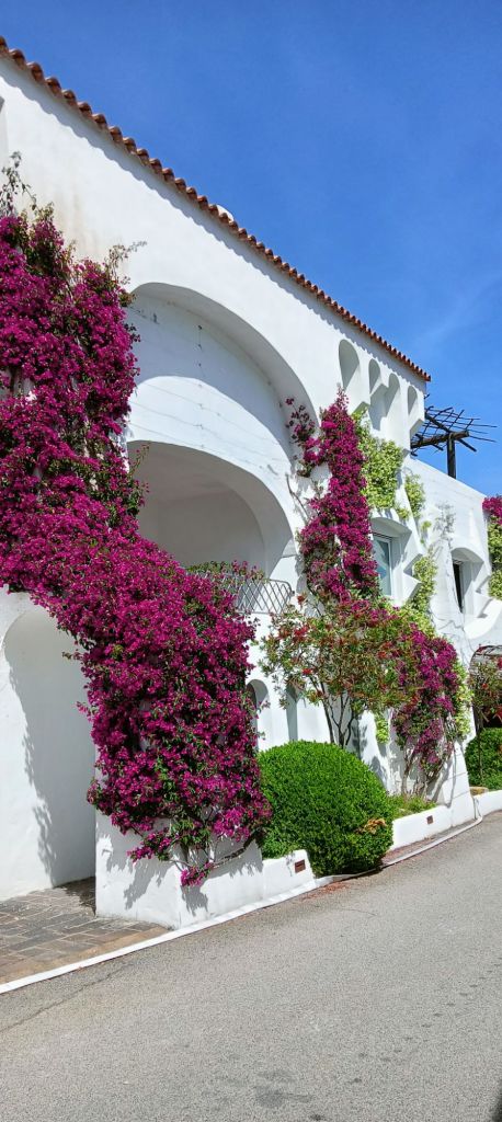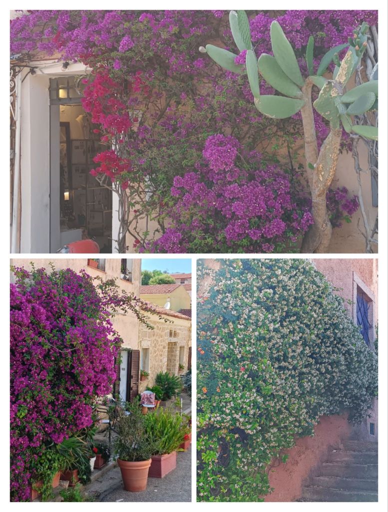 Partout dans cette partie de la Sardaigne, des bougainvilliers et autres buissons fleuris envahissent les rues et les maisons