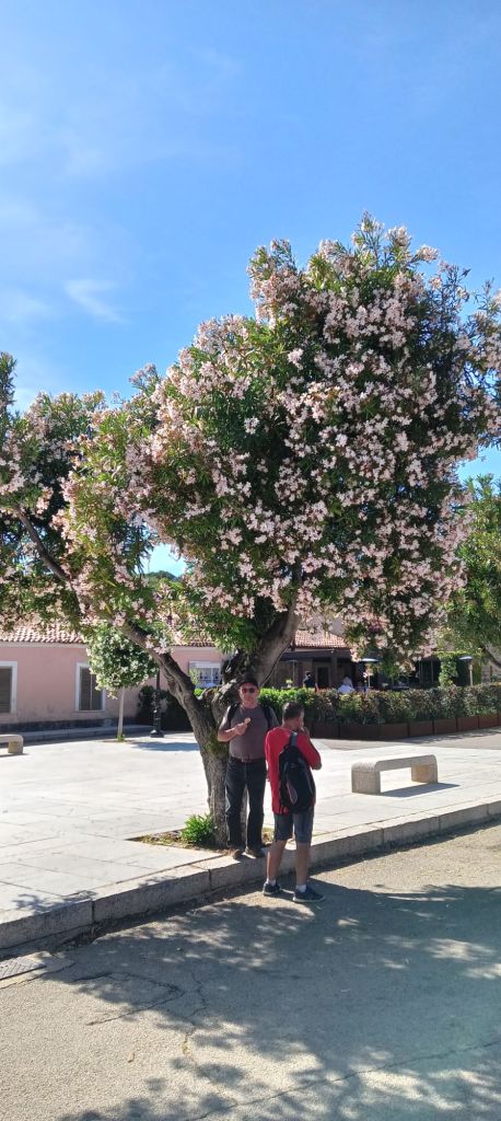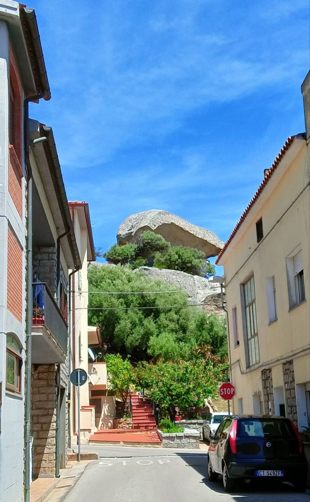 On poursuit notre route vers le bourg d’Arzachena, beaucoup plus populaire, où logent la multitude d’ouvriers et employés travaillant dans les hôtels, restaurants ou au service des particuliers (c’est qu’il en faut du monde pour entretenir ces magnifiques espaces verts !). Halte snack dans un café sur une petite placette sympathique.