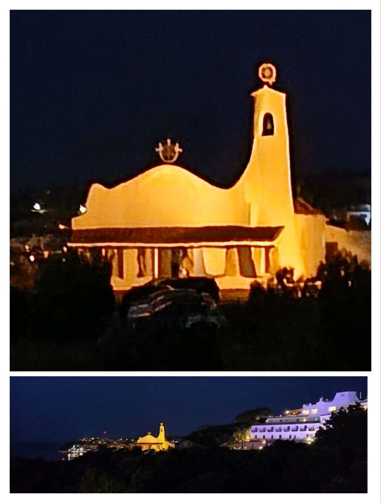 L’église Stella Maria, construite en 69, plutôt originale avec ses lignes courbées, mais que nous n’avons pas visitée pour ne pas inquiéter les enfants qui redoutent pour nous une crise de foi
