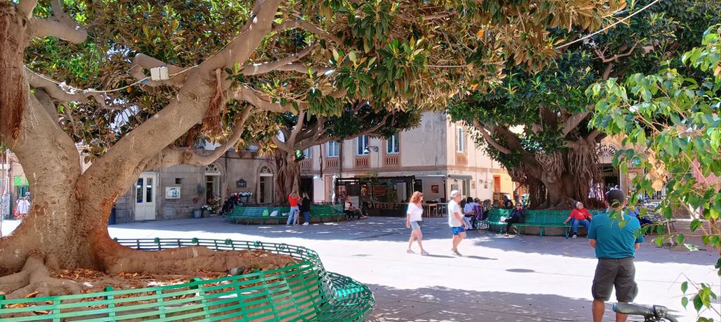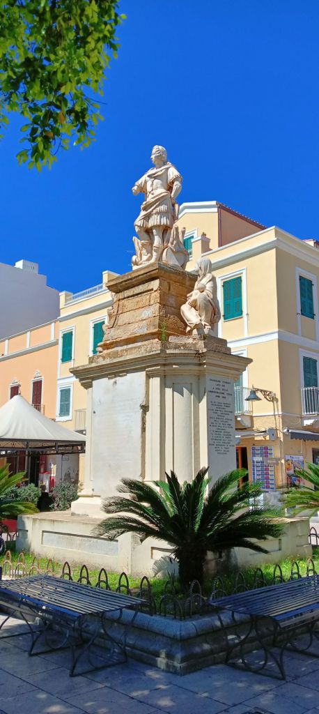 Il est représenté avec à ses pieds une famille d’esclaves affranchis, en hommage à un événement survenu en 1789, quand des pirates ont débarqué sur l’île, ont tué tous les hommes et tous les vieillards, et ont emmené environ 800 femmes et enfants comme esclaves. Ils sont restés prisonniers 5 ans, une centaine d’enfants sont nés durant cette période (no comment…), et c’est finalement ce bon roi Carlo qui a réussi à les rapatrier sur l’île.