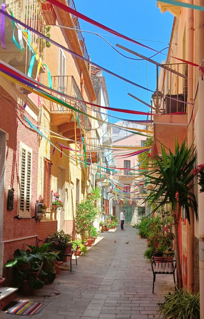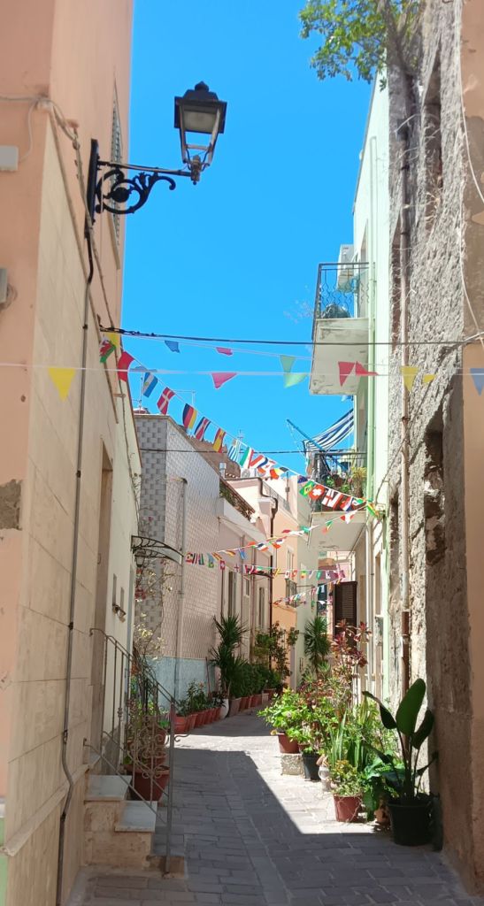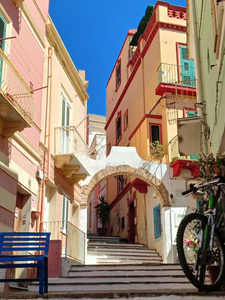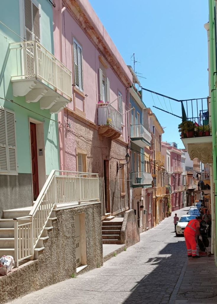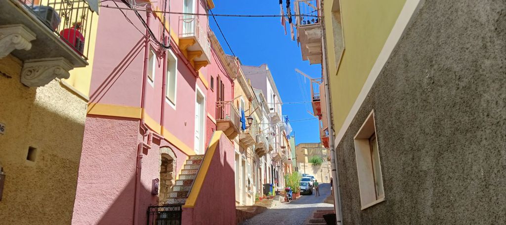…une bourgade très pittoresque aux rues étroites, aux escaliers surmontés d’arches, aux façades colorées de couleurs pastel, si typiques de l’Italie, et en particulier de Ligurie, puisque la ville fut donnée par le roi Carlo Emanuele III à un groupe de familles près de Gênes qui étaient jusque là implantées à Tabarka, en Tunisie. Ça va, vous suivez toujours ? 🤣