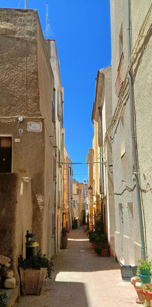 La ville a d’abord été nommée Castelgenovese – château génois – par la famille dominante Doria au 12ème siècle. Puis elle est devenue Castel’Aragonese quand la couronne d’Aragon la conquiert au 15ème siècle. Et enfin la maison de Savoie lui donne son nom actuel au 18ème siècle. Donc, si on suit la logique des 3 siècles, elle devrait encore changer de nom bientôt, au 21ème siècle !
