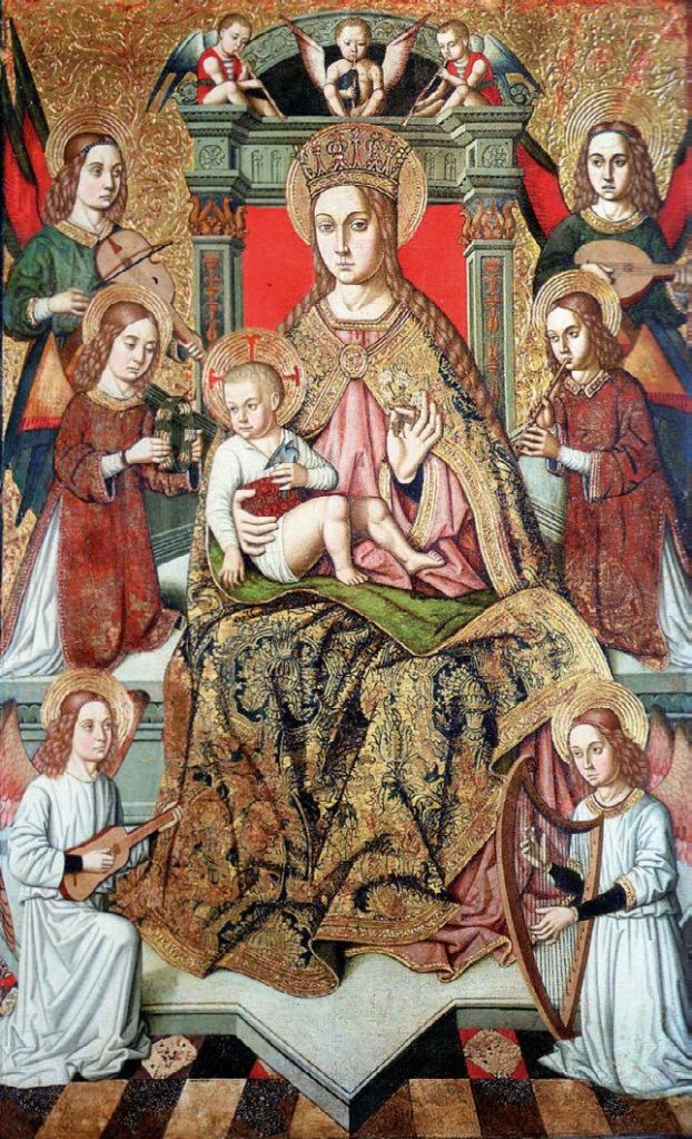 On ne l’a donc pas vu de près. Le retable de l’autel contient un tableau daté du 15ème siècle d’un peintre inconnu, judicieusement appelé le « Maître de Castelsardo ». Voici l’œuvre « en vrai » (merci google) :