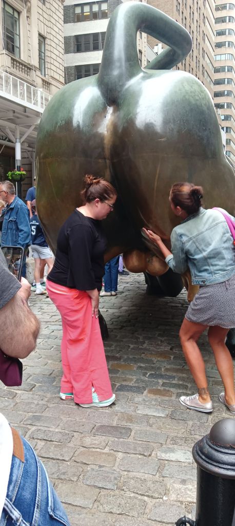 On va tout de suite être confrontés au fameux taureau de Wall Street, enfin surtout à son arrière-train qui offre l’opportunité de gagner beaucoup d’argent quand on a caressé ses parties intimes.