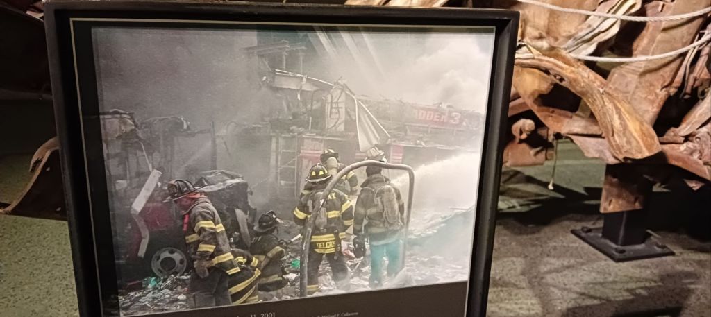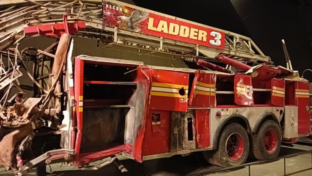 De nombreux vestiges des tours, ainsi que d’innombrables témoignages sonores des pompiers, policiers et secouristes, survivants et familles, ponctuent les différentes salles.