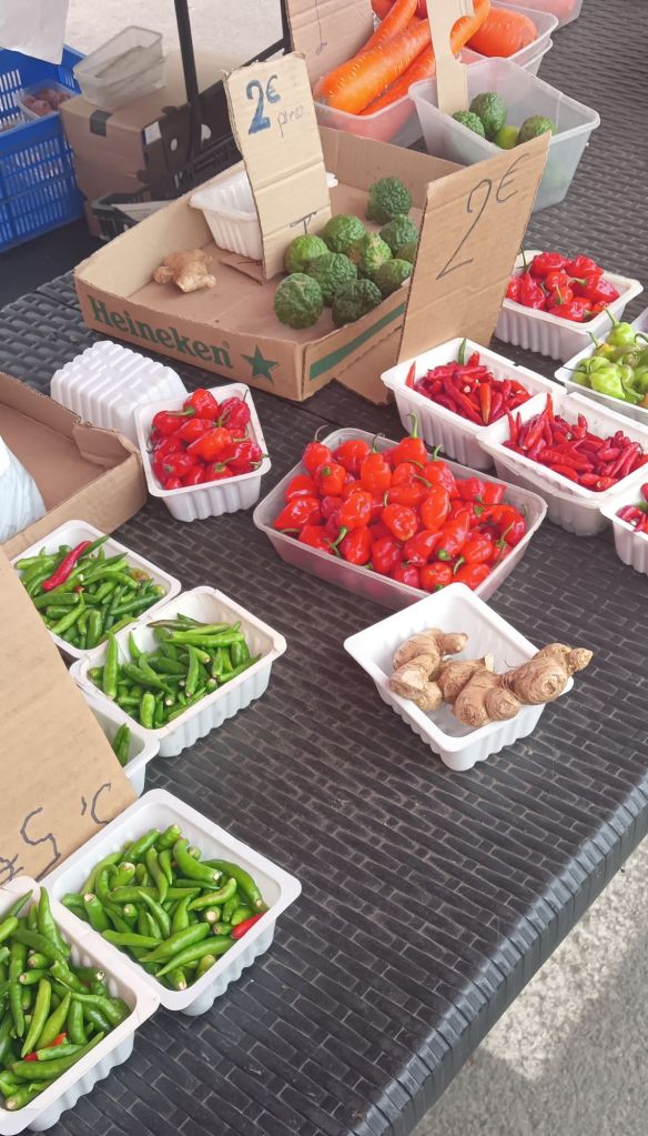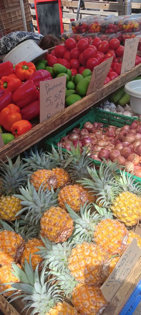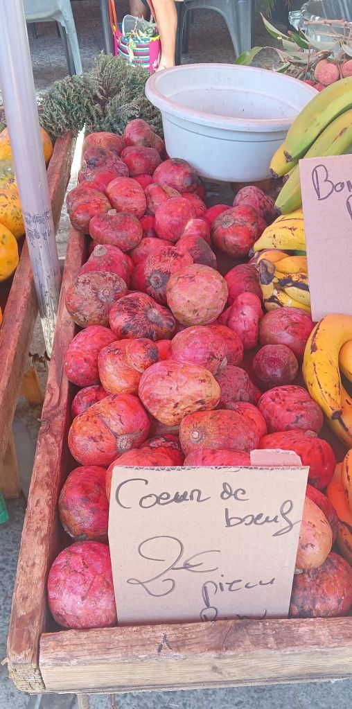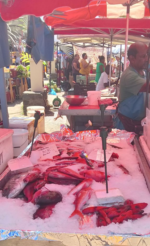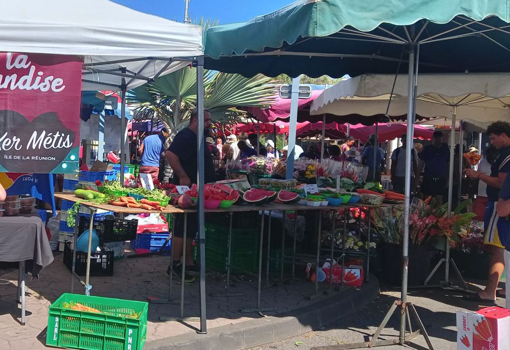 Ce matin on a fait notre marché à Saint-Pierre, l’un des plus réputés de l’île avec celui de Saint-Paul.