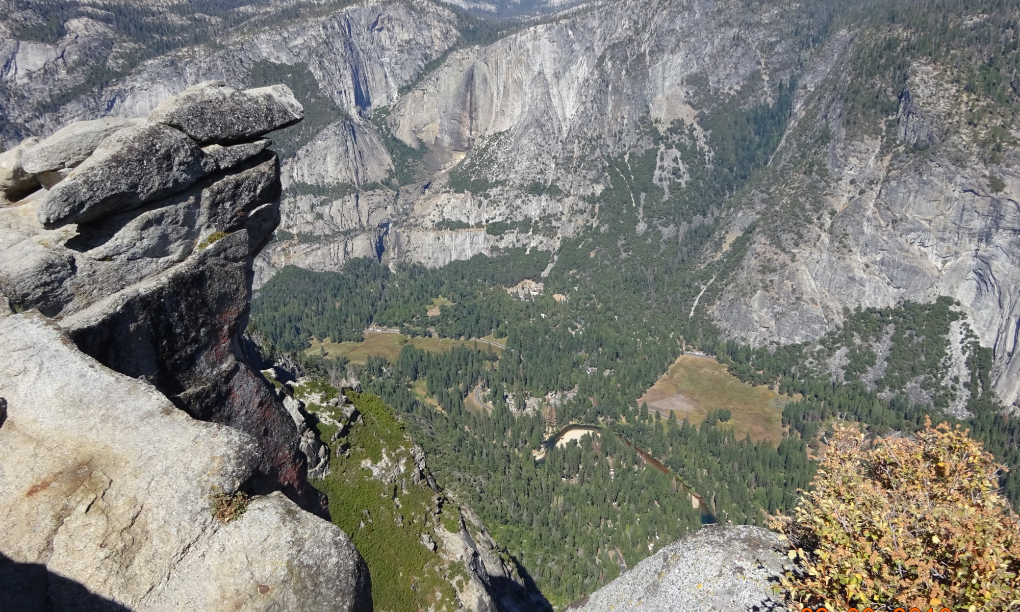 Nous sommes restés 2 jours (dimanche et lundi) au Parc National de Yosemite, le plus ancien parc national américain (1890 !) qui s'étend sur plus de 3000 km2 dans la Sierra Nevada, avec des sommets de 4000 m. On y est entrés par les Tuolumne Meadows, une vaste prairie sur de hauts plateaux à 2600 …